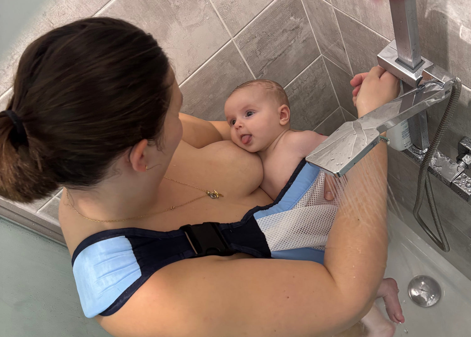 Il vous permet de garder votre bébé tout contre vous, en toute sécurité, pendant la douche.